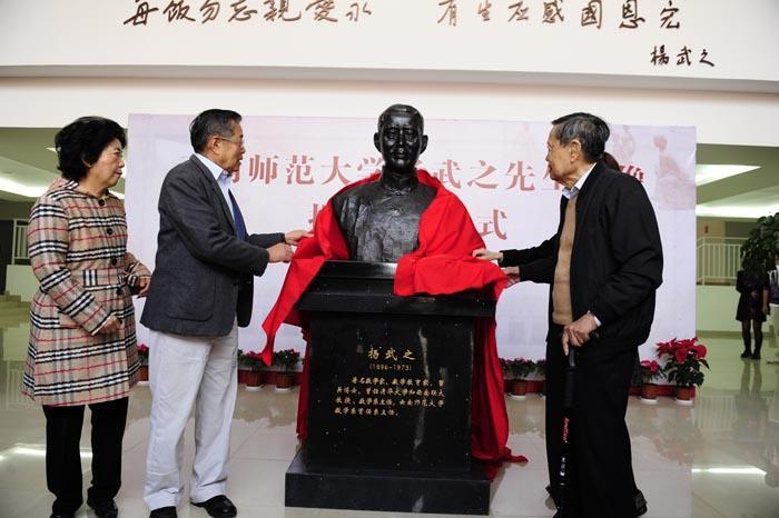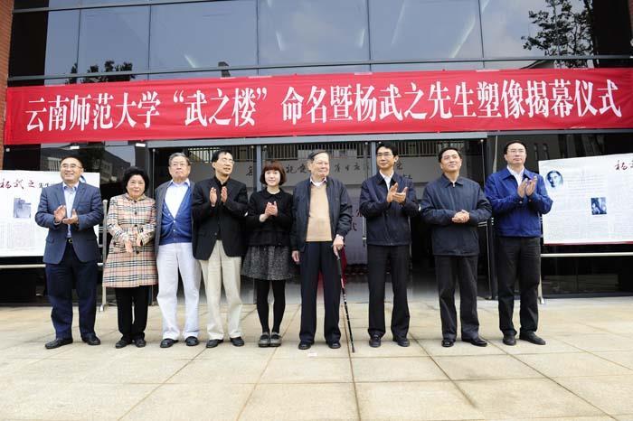 据云南师范大学官网消息,杨振宁是该校终身名誉教授,曾多次回校做客,还给学生们做讲座。2013月,在杨武之逝周年时,该校将数学学院大楼命名为“武之楼”,并举行杨武之塑像揭幕仪式。当岁高龄的杨振宁携夫人翁帆、胞弟杨振汉等人亲临现场,共同为塑像揭幕,“武之楼”也由杨振宁亲笔题写。杨振宁还在西南联大校友友谊林挥锹铲土,同家人一道栽种了一株象征着绵绵联大情和拳拳赤子心的国槐树。